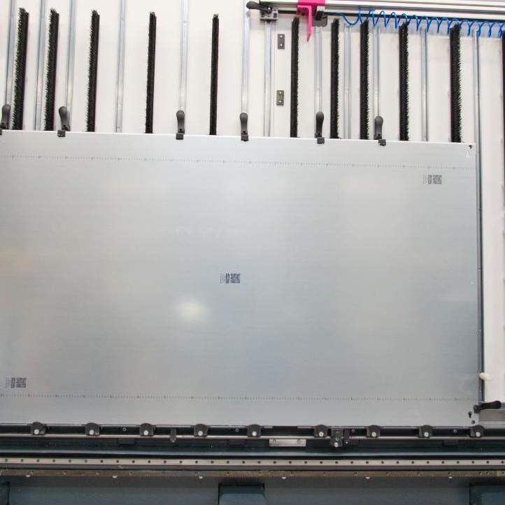 Mit der Anlage werden alle Aussparungen für Anschlüsse, Schalter und Anzeigen präzise gebohrt bzw. gefräst. Die Anlage erlaubt die Bearbeitung von Kompakt- und Großschaltschränken in kurzer Zeit.